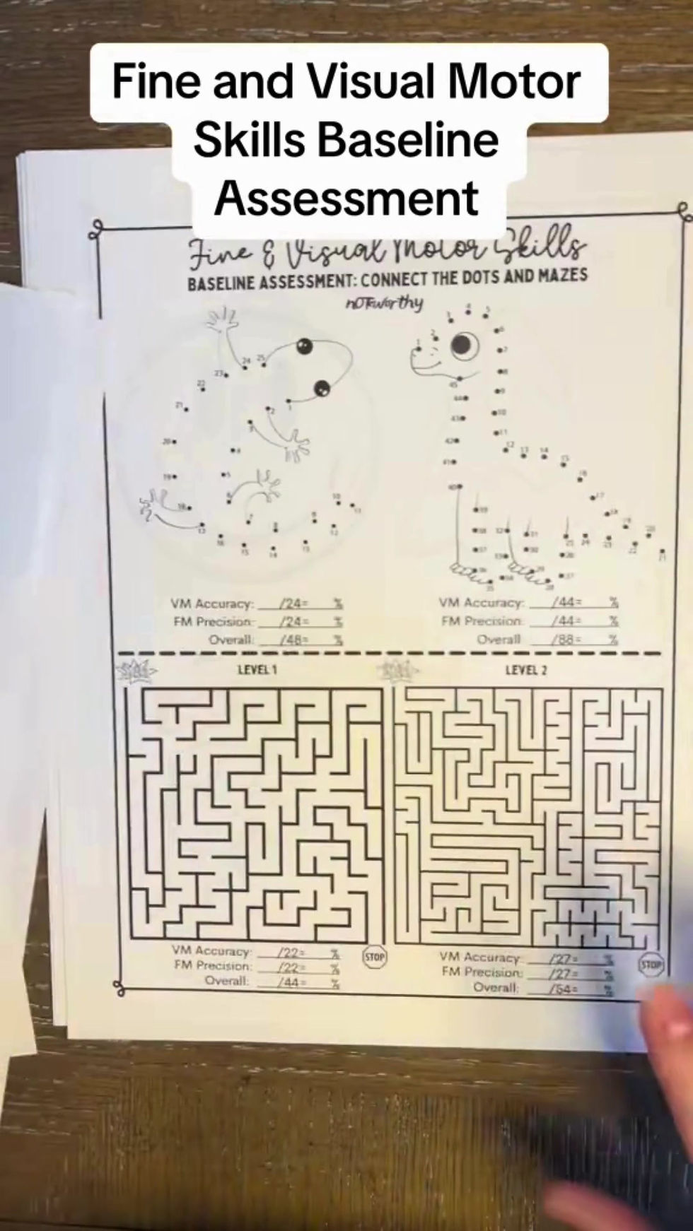 Fine and Visual Motor Baseline Assessment - Occupational Therapy, Special Ed